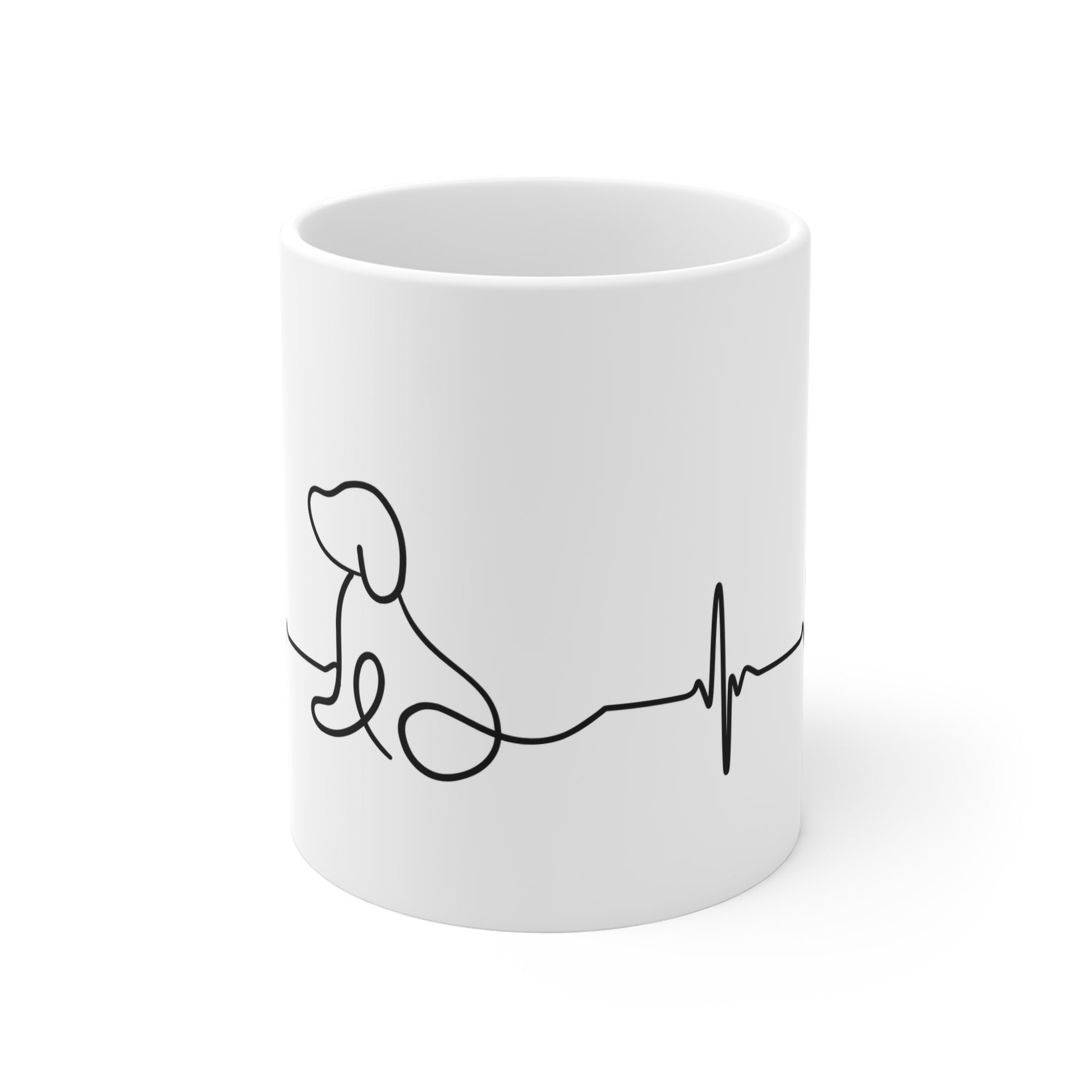 Dog Lover Heartbeat Mug – 11oz Ceramic Coffee Cup with Continuous Line Dog Design