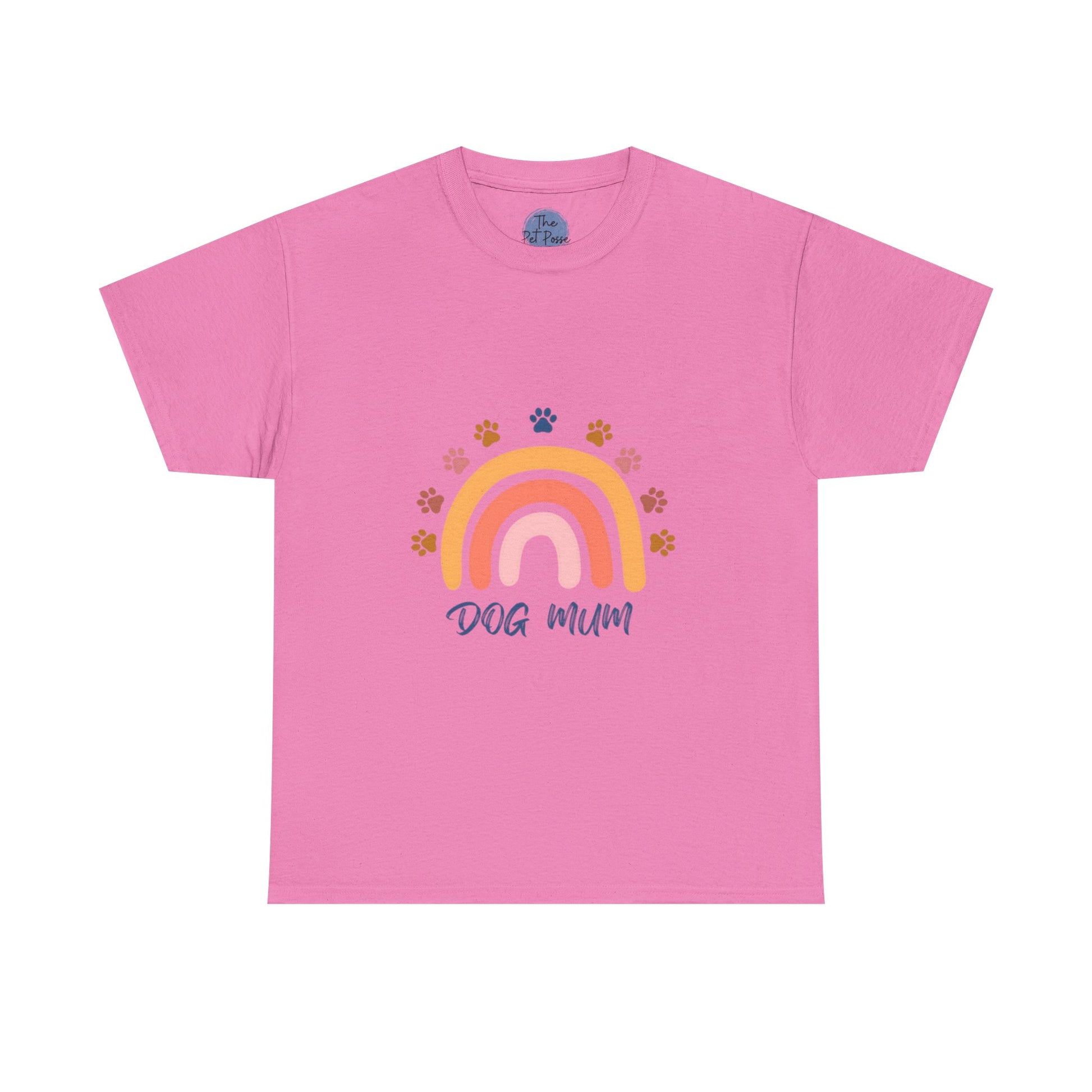Dog Mum Retro Rainbow Tee, Unisex Heavy Cotton Tee, Pet Lover Gift, Dog Mom Shirt, Colourful T-Shirt for Dog Owners, Casual Wear