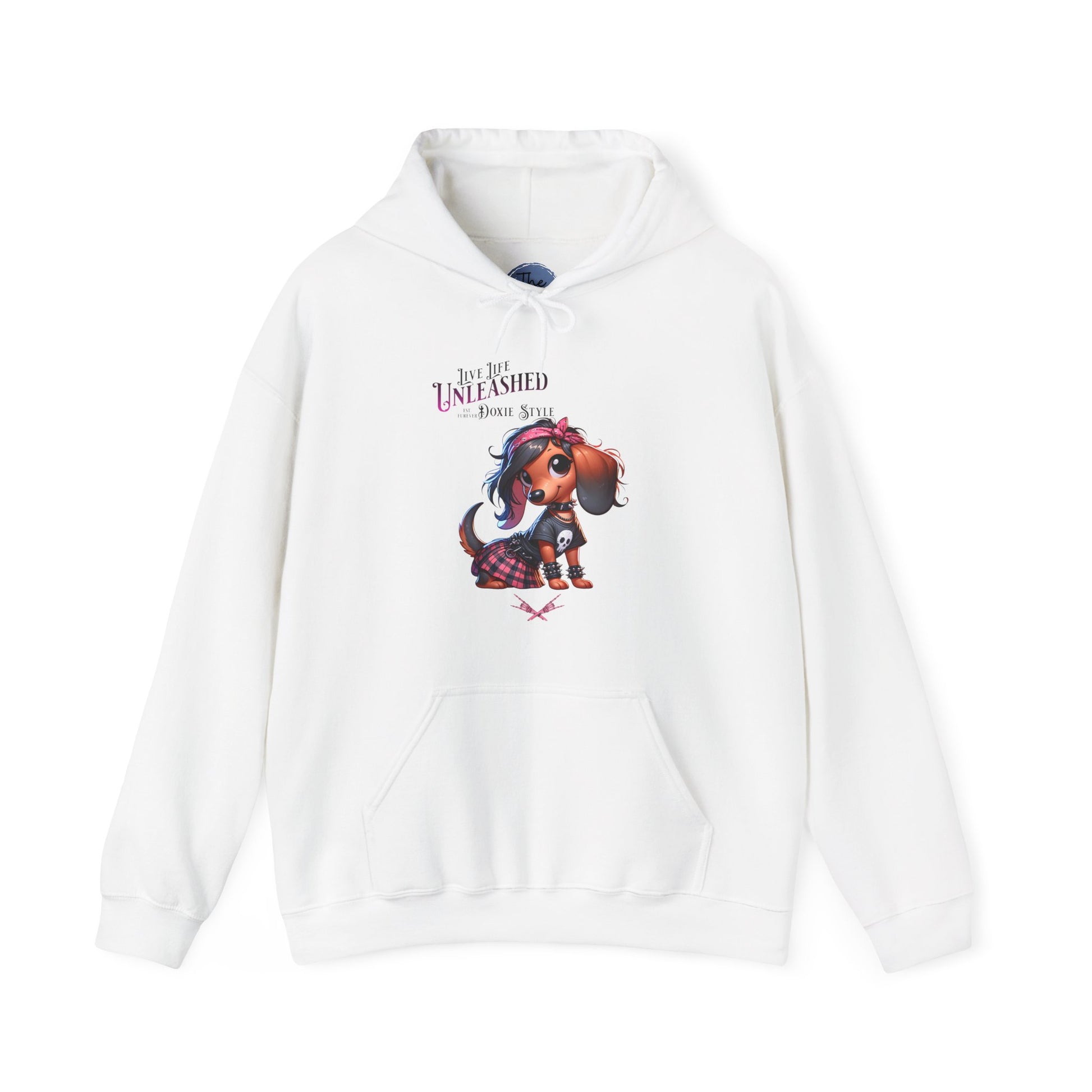 Doxie Style Unleashed : Unisex Heavy Blend Hooded Sweatshirt, Cozy Gift, Pet Lover Apparel, Animal Lover Hoodie, Unique Gift Idea