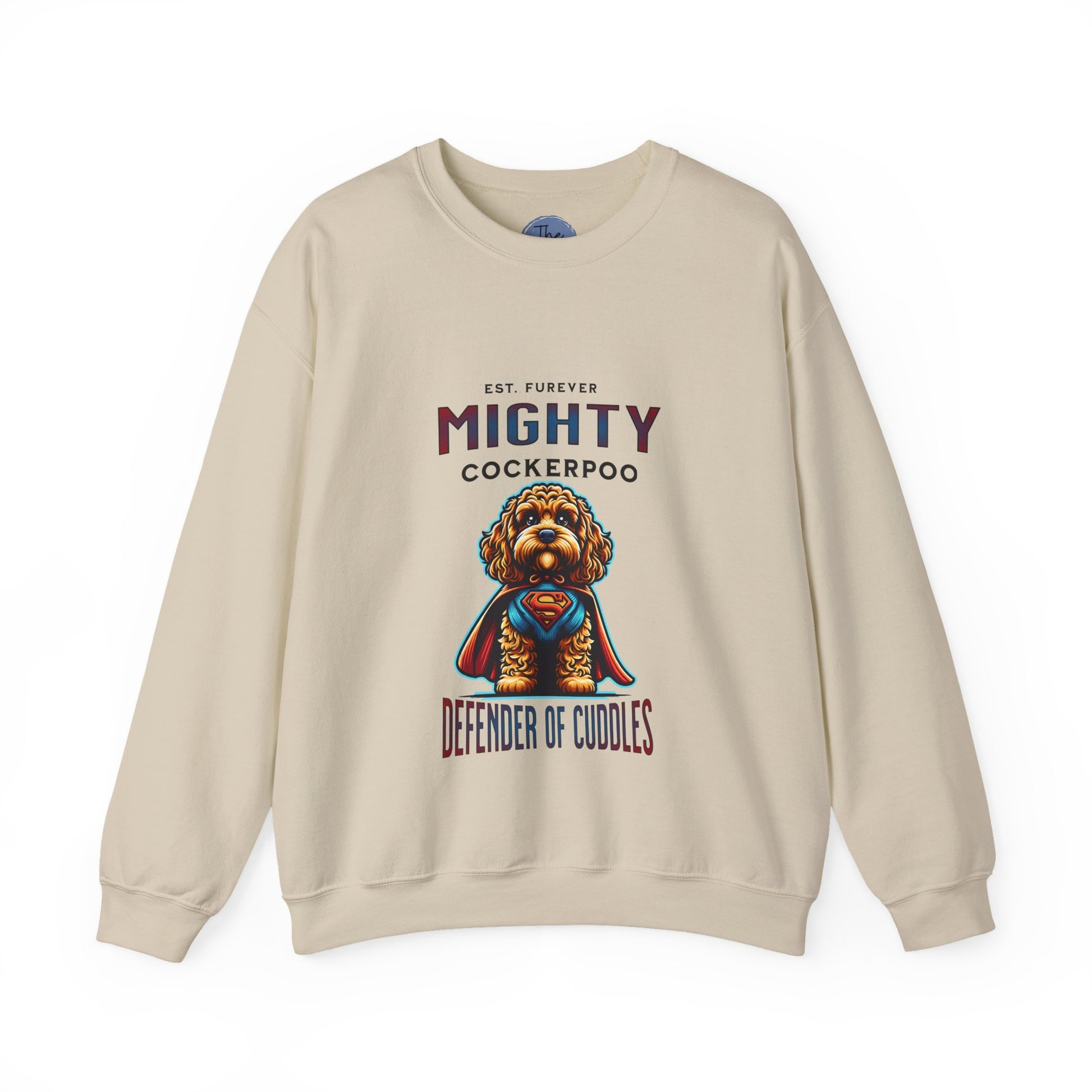 Mighty Cockerpoo Sweatshirt, Defender of Cuddles, Pet Lover Gift, Cozy Apparel, Dog-Themed Sweater, Funny Dog Merchandise